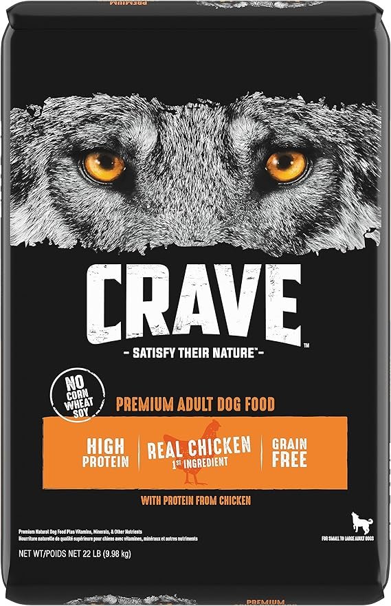 Dogs want the taste and nutrition of a diet that’s rich in animal proteins—not soy or grains such as corn or wheat. And the reason is simple. Protein-rich diets provide the nutrients for a lean, healthy body and the energy to chase. Like the diets of their wolf ancestors, CRAVE recipes are always crafted with real, high-quality animal protein, the full meaty flavor dogs love and no grains.